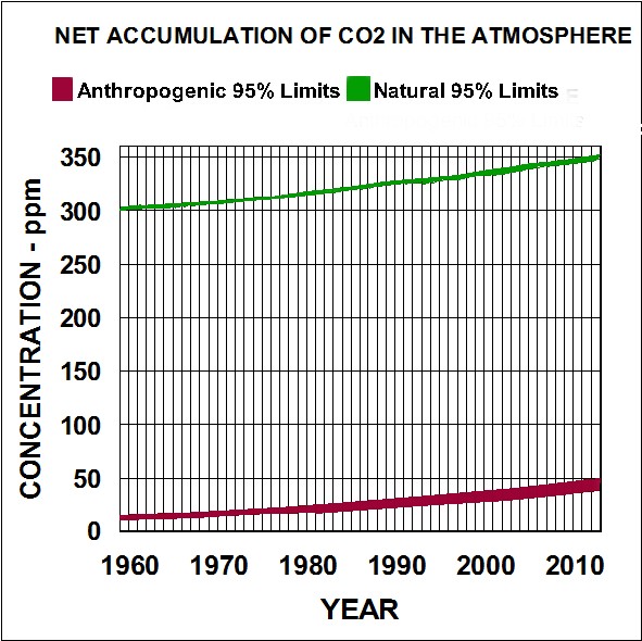 These values in Figure 13. are likely associated with increases in decaying organic matter in the surface water where plankton are most abundant. The values are not in the range of values for fossil fuels. So the “smoking gun” is no more than “blowing smoke”. It should be noted that if, as reported, 90 % of dissolved carbon in sea water is organic, all the previous figures that show total atmospheric carbon, can be reduced by 10 % to show DOC relationships.