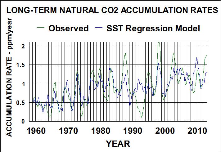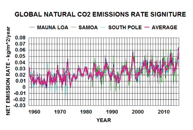 Most significant conclusion from this analysis is that trying to control the atmospheric concentration of CO2 is an exercise in futility. Natural CO2 emission rates are being controlled by water cycles of freezing/thawing, and evaporation/condensation. Thus, emission rates are strongly related to SST and dew/freeze point temperatures